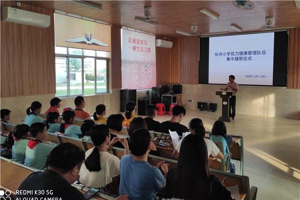 為貫徹落實(shí)習(xí)近平總書記關(guān)于學(xué)生近視問(wèn)題的重要指示精神和教育部等八部門印發(fā)的《綜合防控兒童青少年近視實(shí)施方案》要求,切實(shí)落實(shí)保護(hù)學(xué)生視力的相關(guān)工作事宜,10月10日,裕洲小學(xué)舉行了視力健康管理隊(duì)伍集中履職儀式。