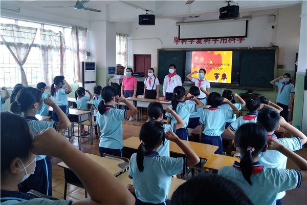 裕洲小學校長郭金棠,德育主任李潔瓊,大隊輔導員黃彩玲、優秀輔導員及隊員代表集聚一堂,參加了本次的活動。李主任殷切希望隊員從小樹立遠大的理想,始終聽黨的話、跟黨走,讓紅領巾更加鮮艷。隊員代表則號召大家珍惜時間,努力進取,為明天的幸福生活在今天不懈奮斗,努力成長為能夠擔當民族復興大任的時代新人!