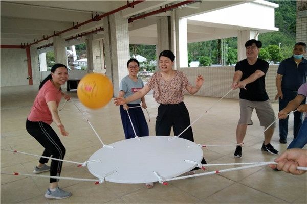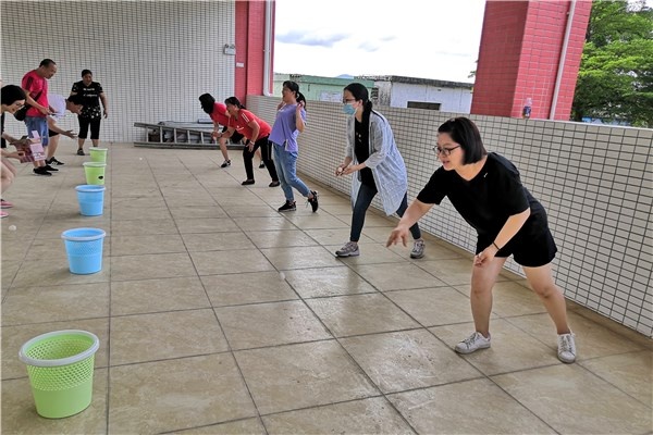 活動前,工會根據教職員工的喜好,精心安排了“集體墊球”、“百發百中”等活動。活動在工會主席陸其輝老師的組織帶領下有序地開展,員工們人人積極參與,場面熱烈有趣,整個場地上充滿了掌聲與歡笑。如果說“百發百中”項目講究的是技巧,那“集體墊球”要求的就是集體意識了。在“集體墊球”中,大家全神貫注地注視著球,想盡辦法維持著板平衡的同時,腳步快速平穩移動,以保證球不落地,整個過程即緊張又刺激。哨聲響起,全場歡呼,項目在一片相互擊掌聲中落下了帷幕。員工們紛紛表示這種集體活動今后還要多多舉行,同時也會以更充足的干勁投入到學校工作中。