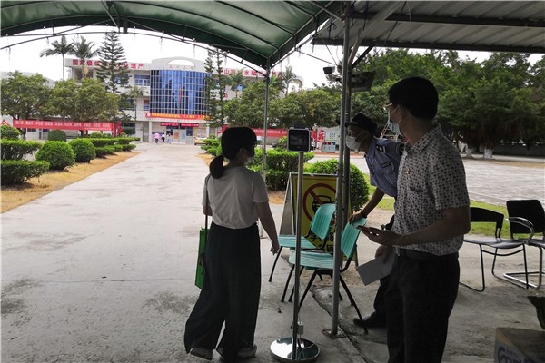 工作組一行在裕洲小學(xué)校長(zhǎng)郭金棠及一眾中層的陪同下,認(rèn)真對(duì)照《中山市中小學(xué)校幼兒園學(xué)生返校準(zhǔn)備工作驗(yàn)收表》(第二版)的要求,了解了學(xué)校開學(xué)準(zhǔn)備方案及工作流程,對(duì)校門口的熱成像體溫測(cè)量、出入登記、教室、隔離室、防疫物資儲(chǔ)備等情況進(jìn)行實(shí)地檢查。