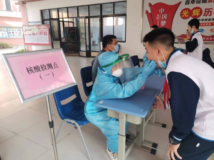 演練假定坦洲衛(wèi)生健康部門工作人員致電吳校長,告知初一(1)班學生小趙是新冠肺炎病例的密切接觸者,被轉(zhuǎn)運后該生核酸檢測結(jié)果呈陽性,經(jīng)摸查,學生小趙的密切接觸者共有280人。
