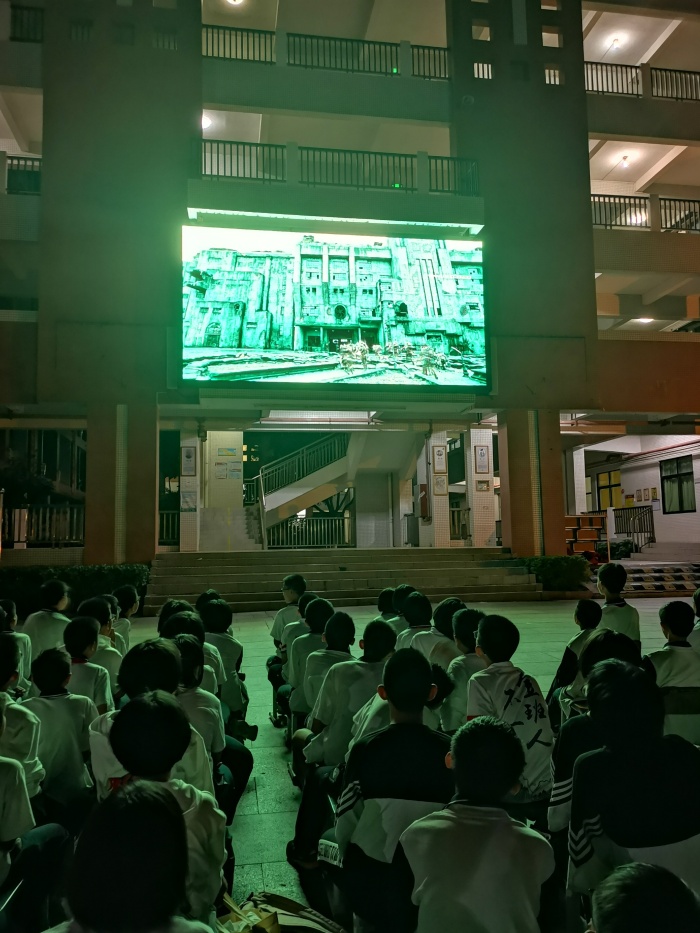 為加強愛國主義教育,激發學生愛國主義情感,豐富校園文化生活,11月19日晚上,吳劍文校長、黃金麗副校長帶領全校1800多名師生,觀看愛國主義電影《八佰》。