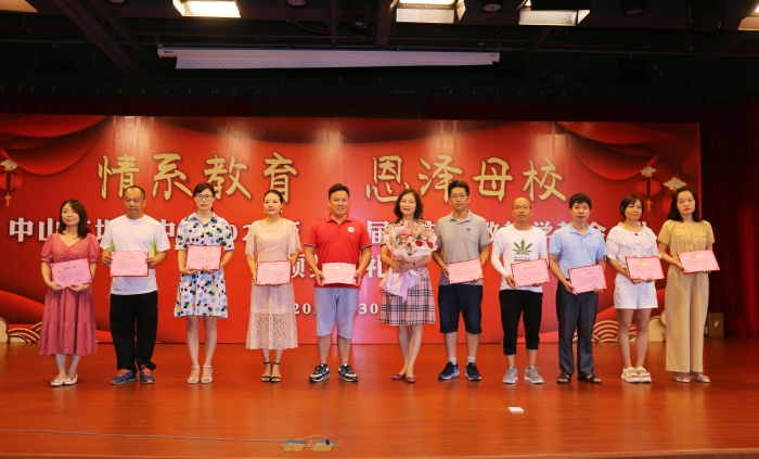 今年中考坦洲中學再創佳績,本次受獎的學生是中考達中山市僑中錄取分數線以上的學生,共有141人。學生頒獎環節設計用心,榮譽證書和獎金由家長向學生頒發,學生向家長回贈自己精心準備的禮物和一個愛的擁抱,場面溫馨感人。