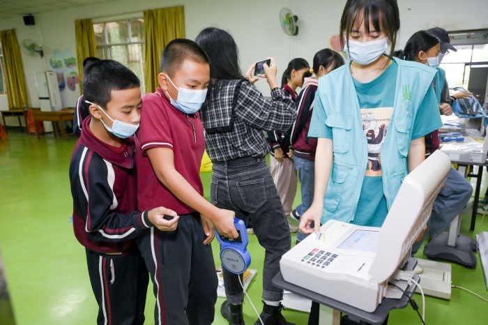 活動現場設有趣味互動攤位和國民體質檢測,在聽講座之余,還能參與互動游戲,獲取精美禮品。更有專業的工作人員,全面科學的為師生檢測,為增強國民體質打好堅實基礎。