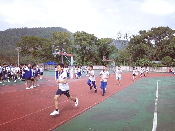 伴隨著激昂的運動員進行曲,國旗隊、彩旗隊、各班方隊、裁判隊邁著整齊劃一的步伐,喊著鏗鏘有力的口號有序地走過主席臺。開幕式的入場表演結束后,各項比賽正式進行,裁判員們各司其職,運動員在各個賽區緊張而有序地進行比拼:跳繩、籃球、足球、長跑、跳遠、短跑……比賽項目雖多,陽光雖猛,但學生們激情不減,賽場上處處可見揮灑著拼搏汗水運動員、吶喊著奮進加油的啦啦隊。運動場上空縈繞著學生們朝氣蓬勃的青春氣息,綻放著動人心弦的青春風采。