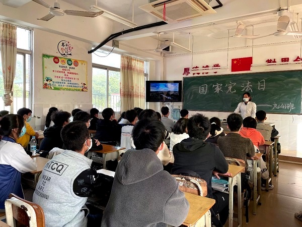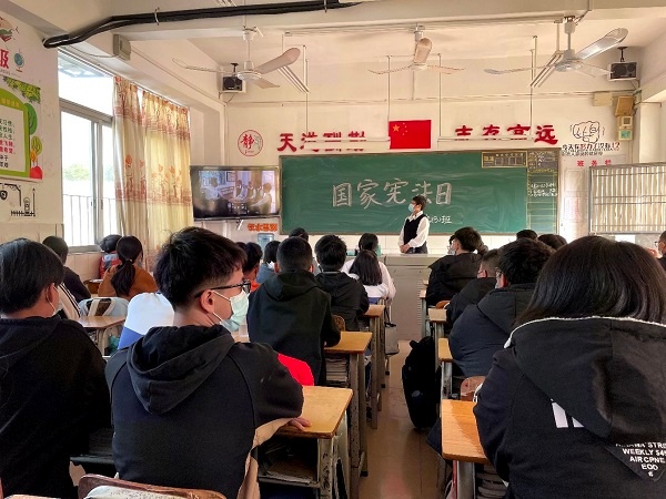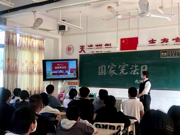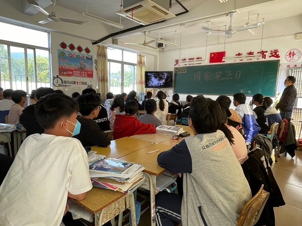 2022年12月4日是第九個“國家憲法日”,也是我國現行憲法公布施行四十周年。為進一步弘揚憲法精神,維護憲法權威,在全校營造人人學習憲法、遵守憲法、維護憲法的良好氛圍,樹立學生學法、知法、懂法、守法的意識,12月12日桂南學校以“學習、宣傳和貫徹黨的二十大精神,推動全面貫徹實施憲法”為主題,圍繞習近平法治思想、憲法及民法典等重點內容,組織開展了“國家憲法日”的主題班會活動。