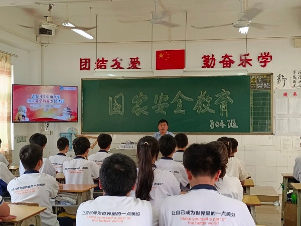 在活動現場,各班班主任作為普法宣講人走進課堂,通過視頻、故事、圖片等形式,用通俗易懂的語言向學生介紹了國家安全教育日的確立,接著班主任們向學生講解了國家安全包含的內容,主要包括政治安全、軍事安全、經濟安全、文化安全、社會安全等領域,以及危害國家安全的行為包括國家防范、制止和依法懲治任何叛國、分裂國家、煽動叛亂、煽動顛覆人民民主專政政權的行為;防范、制止和依法懲治竊取、泄露國家秘密等危害國家安全的行為;防范、制止和依法懲治境外勢力的滲透、破壞、顛覆、分裂活動。然后班主任們還通過以案說法的方式,用真實事例生動直觀地向學生們宣傳了國家安全方面的法律知識,引導學生樹立正確的人生觀和價值觀,增強法律意識,做到學法懂法遵法守法。