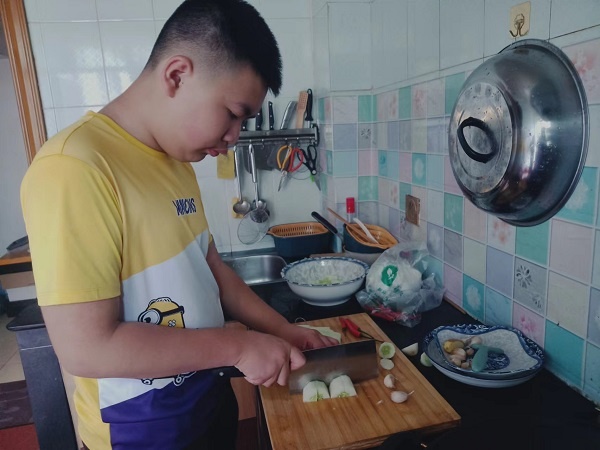 四至六年級開展了“我為家人做頓飯”活動。隊員們在爸爸媽媽的引導下,有模有樣地摘菜、炒菜、包餃子……隊員們通過做飯,不但解鎖了新的生活小技能,還提高了動手能力,體驗了勞動的快樂。