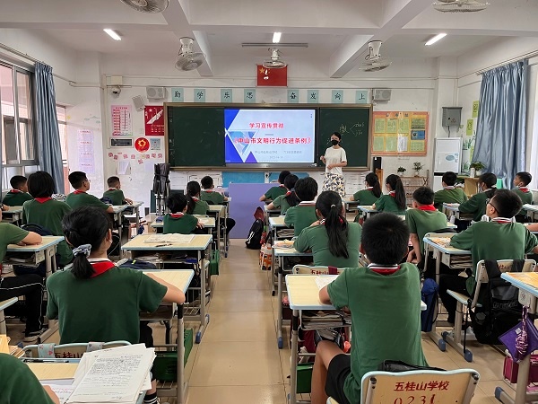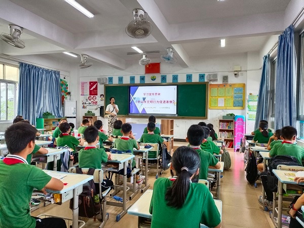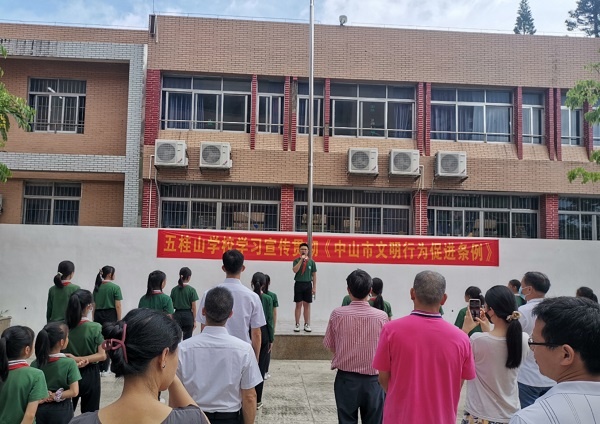 為加強(qiáng)未成年人思想道德建設(shè),全面提升全校師生的道德素質(zhì),使廣大師生深刻理解和把握文明行為的精神內(nèi)涵, 5月30日,五桂山學(xué)校開展了《中山市文明行為促進(jìn)條例》進(jìn)校園系列活動(dòng)。學(xué)校通過國旗下講話和主題班會(huì)活動(dòng)積極宣傳條例,號(hào)召廣大師生做新時(shí)代的文明中山人。