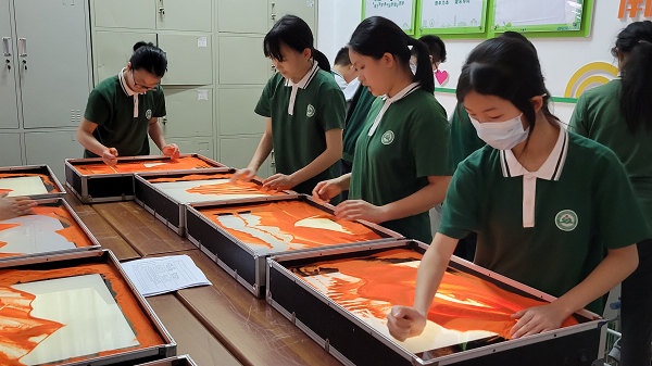 本期沙畫創作培訓班每逢周三下午進行,包括了校內7個課時和校外3個課時的沙畫藝術普及課程。學習內容有基礎沙畫技法講解、沙畫作品制作、結業錄制沙畫作品視頻等。為了讓培訓班出實效,學校團委會在五桂山團工委的支持下,聘請了專業的沙畫老師。沙畫走進學校,既豐富了校園文化生活,擴大了學生視野,激發了學習興趣、發展個性特長,也促進了學生身心健康、和諧發展。青年學生通過制作沙畫,鍛煉了動手能力,培養了學生的審美感知能力和藝術創作能力。
