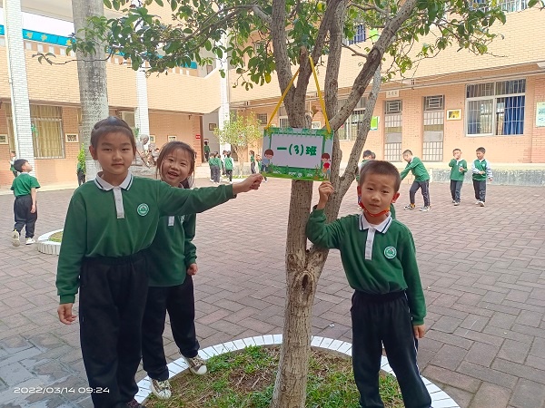 德育處黃學富主任為各班頒發了認養牌。各中隊可以在小學部校園里以中隊名義認養一棵樹木。確認認養后,各中隊將制作植物成長記錄表,每周安排5名隊員輪流照看,讓每個隊員都有參與的機會,并認真填寫植物成長記錄表。學校少先隊要求:認養班級必須真心喜歡并細心照料所認養的植物,主動向老師、家長或書本網絡學習相關植物的養護方法,定期為植物澆水、施肥、除草,為植物營造一個良好的生存環境;關心認養的植物,不讓它受到攀爬、踩踏、采摘等侵害;善待校園內的所有花草樹木,與其他同學聯手,為愛綠護綠盡力。
