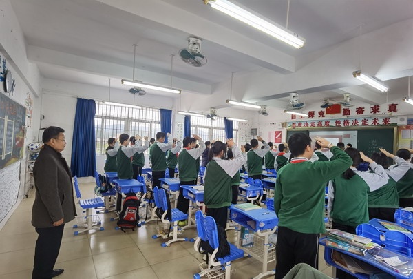 中學部的開學典禮在各班教室里舉行。同學們高唱國歌后,王永豪同學首先代表學生發言,他鼓勵全體同學樹立目標,不懈努力,爭做勇敢的追夢人。接著,何榕主任致辭,她將汪國真先生的三首詩作《熱愛生命》《跨越自己》《感謝》串聯三組關鍵詞“珍惜”“奮斗”“感恩”,勉勵全體同學珍惜時間、奮力拼搏、擁愛遠行,既做內心豐盈的思考者,更做積極創造的行動者,乘風破浪,勇往直前。