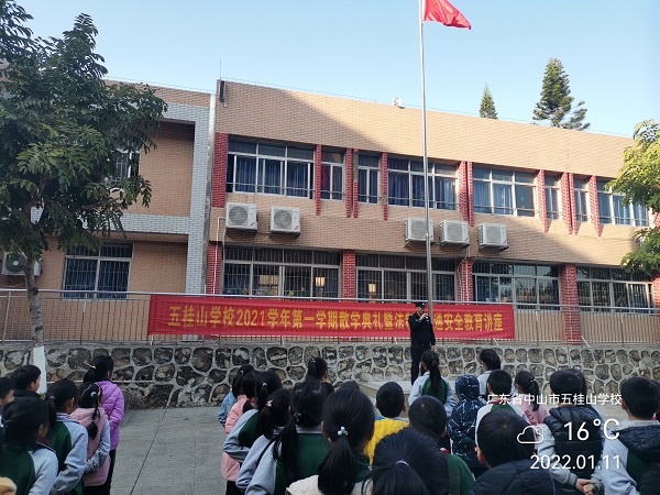 時光荏苒,緊張而愉快的一個學(xué)期即將結(jié)束。2022年1月11日下午,五桂山學(xué)校全體師生齊聚小學(xué)部廣場,舉行2021學(xué)年上學(xué)期散學(xué)典禮及寒假法紀(jì)安全教育。