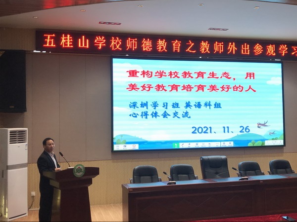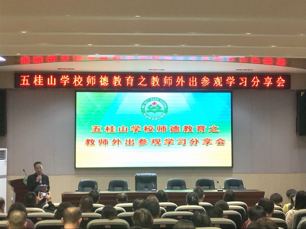 為提高教師的教育教學水平,豐富校本教研形式,進一步強化外出學習效果,發揮外出學習教師的輻射、引領作用,做到“部分教師學習,全體教師受益”,達到資源共享,共同提高的目的,11月26日下午,五桂山學校結合師德教育,在綜合報告廳召開了師德教育之骨干教師深圳參觀學習分享會。會議由辦公室姚遠主任主持,五桂山學校全體教師參加了會議。