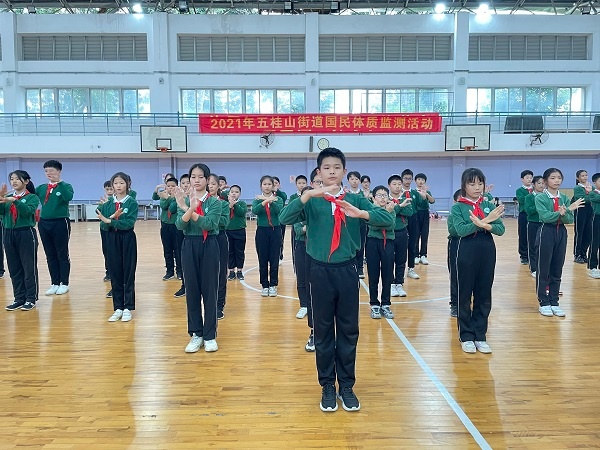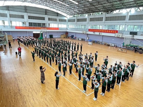 為促進(jìn)良好班級風(fēng)貌,形成健康向上、積極進(jìn)取的學(xué)習(xí)風(fēng)氣,彰顯校園文化特色,11月19日,五桂山學(xué)校利用大課間的時(shí)間,在體育館舉辦六年級《聽我說 謝謝你》手語操比賽。六年級5個(gè)班級全體學(xué)生參加此次活動,德育處黃學(xué)富主任、各年級組長,大隊(duì)輔導(dǎo)員魏其標(biāo)老師擔(dān)任此次比賽的評委。