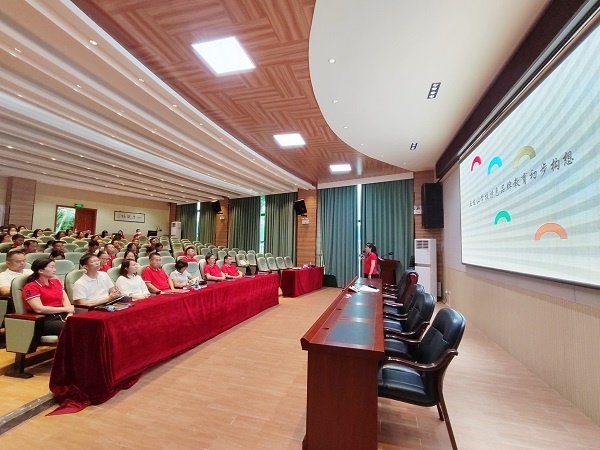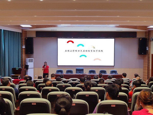 為進一步凸顯學校的辦學特色與品牌,2022年6月15日下午,五桂山學校在綜合報告廳召開專題會議,研討以“五色”教育為主要載體和抓手,開展學校品牌特色課程。研討會由李萌校長主講,全體教師參加會議。