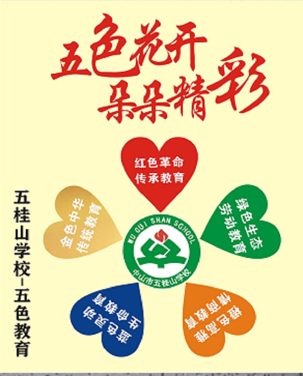 在金色中華優秀傳統教育上,五桂山學校秉承“挖掘中華歷史 傳承傳統文化”的目標。在人類歷史長河中,中華民族的祖先用勞動和智慧創造了光輝燦爛的文化。中華文化,源遠流長,繼承和弘揚中華傳統文化是凝聚中華民族力量的客觀要求,是建設有中國特色的社會主義物質文明和精神文明的現實需要。五桂山學校是中華優秀傳統文化教育實驗學校,學校擬大力開展賞民俗憶傳統、24節氣介紹等傳統節日、節氣教育;通過禮儀文化教育、知恩感恩、倡美德做表率等系列活動,加強傳統美德教育;舉辦主題書畫展、經典誦讀(《三字經》、《千字文》、《詩經》等)、經典作品書法比賽、粵曲進校園等中華傳統文化活動,讓學生在參與活動中感受中國文化的豐富內涵,潛移默化中達到知行統一。