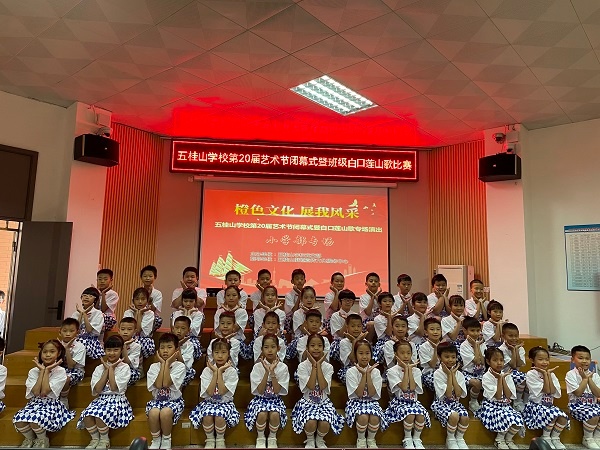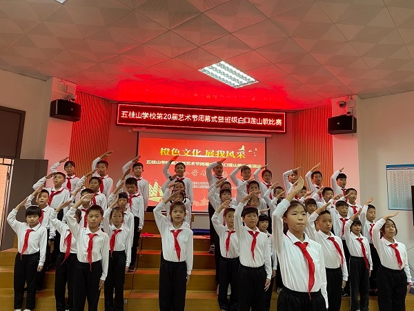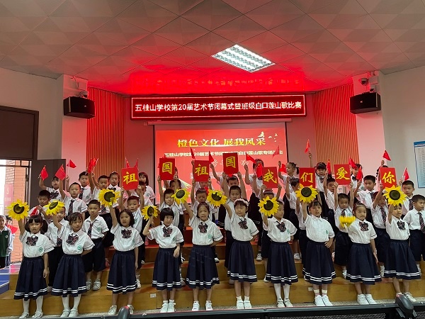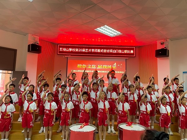 為弘揚愛國主義精神,豐富學生的校園文化生活,五桂山學校圍繞“五色教育”之橙色文化教育,開展了為期一個月的第20屆藝術節(jié)系列活動。11月4日上午,五桂山學校第20屆藝術節(jié)閉幕式暨白口蓮山歌專場活動在小學部階梯室舉行,活動以“歌頌偉大祖國,肩負神圣使命”為主題開展班級紅歌比賽。