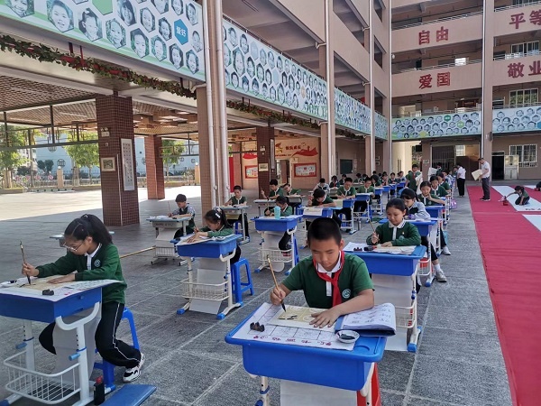 為進一步凸顯五桂山學校五色教育的辦學特色,彰顯高雅藝體魅力,提升學生健康審美情趣,傳承紅色基因,培養時代新人。10月21日下午,五桂山學校開展了“橙色文化 展我風采”——書法現場展示活動。
