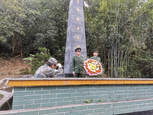 寂靜的小溪路旁,遍植青松翠柏,聳立著高大雄偉的紀念碑,莊嚴肅穆。伴隨著雄壯的國歌響起,全體人員肅立唱國歌,向革命烈士致敬。接著默哀1分鐘,表達對烈士的敬仰和懷念之情。默哀結束后,在莊嚴的獻花圈進行曲中,武裝部民兵代表敬獻花圈,在場所有人也向革命烈士敬獻鮮花行禮,繞紀念碑瞻仰一周,表達對革命先烈們的沉痛哀思。