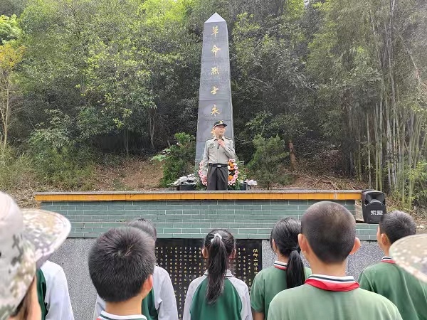 五桂山學校德育處黃學富主任在講話中希望大家吃水不忘挖井人,珍惜今天的幸福生活,感恩圖強。他要求同學們以革命先烈為榜樣,以實際行動繼承革命先烈的遺志,好好學習,增長知識,長大后為國家的繁榮富強做出應有的貢獻。五桂山街道武裝部馮潤林副部長在講話中也呼吁大家牢記歷史,勿忘國恥,用自己的實際行動繼承先烈的遺志,為實現中華民族偉大復興而努力。