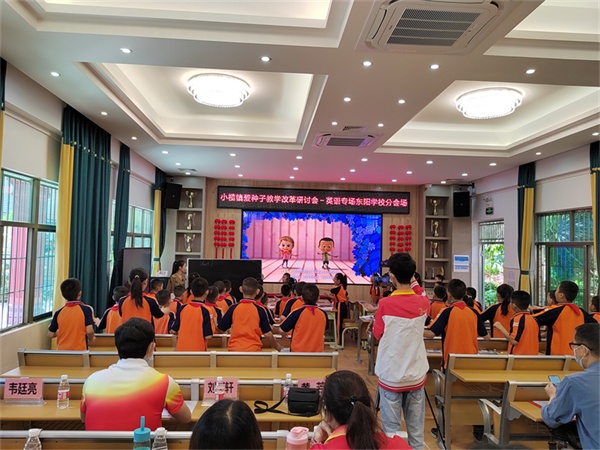 陽光燦爛彤彤日,春和景明淡淡風。為進一步推進“愛種子”教學模式進課堂,深化互聯網環境下教育教學改革實驗,4月14日上午小欖鎮“愛種子”英語課堂教學改革研討會在東陽學校舉行。小欖鎮教育和體育事務指導中心李良章校長、中山市愛種子項目經理林柳光先生、東陽學校劉萬軒校長、愛種子領教員利生小學鄔潔慧老師參加了本次活動。由于疫情原因,本次活動還采用企業微信進行直播,分享給不能到達現場的老師觀看。