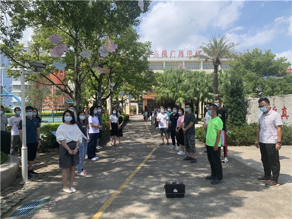 為貫徹落實新冠肺炎疫情防控工作方案,加強學校應急處置能力,抓實抓細學校疫情防控各項工作,確保新學期順利開學和師生健康,8月30日上午,中山市小欖廣源學校開展了秋季開學新冠肺炎疫情防控應急處置演練,小欖鎮教育線黨委副書記岑艷芬、廣源學校衛生副校長黃貫中及學校全體教職工參加了本次演練。