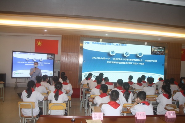 為深化課堂教學改革,進一步提升教師信息技術應用能力,推動信息技術與學科教學的深度融合,2022年4月11日,小欖鎮第一中學組織全體教師在階梯室舉行“信息技術與學科教學有效融合”課堂教學比賽總結暨教師信息技術提升工程2.0培訓。學校呂麟校長、蔣躍副校長、陳源斌副校長等行政參加了總結及培訓活動,郭敏副主任主持活動。張麗、黃曉君兩位老師分別為大家展示了一節信息技術與課堂教學相結合的示范課。