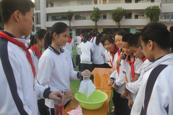 小欖鎮優秀科技輔導員陳榮南老師之后給大家介紹了科技節活動的內容。本次科技節活動分互動區域、展示區域兩大區域,前者由每班主持兩個科技項目,供同學們游玩體驗;后者主要通過科學視頻、科幻畫展、科普大篷車供同學們觀摩、學習和體驗。