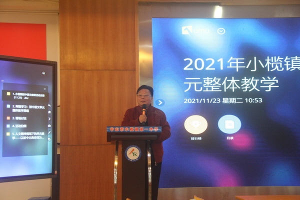 2021年11月23日,小欖鎮初中語文“單元整體教學”教研活動在小欖一中舉行。這也是和東升片合并后的第一次集體教研活動。中山市教育教學研究室語文教研員張寶華老師、小欖鎮語文中心教研組組長高開洪老師及小欖各校初中語文教師參加了活動,小欖一中彭耀華老師主持活動。
