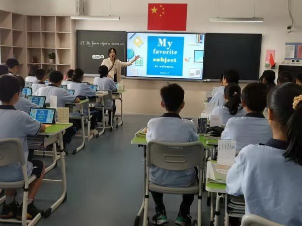 在七年級7班,工作室成員觀摩了一節(jié)英語課《Unit 9 My favorite subject is science》(Section A)。課堂上,師生們熟練運(yùn)用平板電腦開展教學(xué)互動及評價(jià),先進(jìn)科技與傳統(tǒng)教學(xué)有機(jī)融合,取得良好效果。