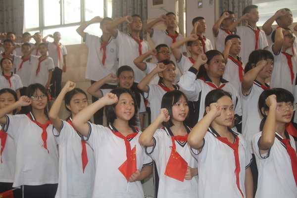 校團委書記李江同志,帶領大家在黨旗、團旗、隊旗下重溫入隊誓詞,2020級少先大隊大隊長黃杏穎同學帶領全體少先隊員呼號 “準備著:為共產主義事業而奮斗”“時刻準備著!”這一系列儀式,讓少先隊員們堅定了繼承和弘揚少先隊光榮傳統的決心,增強了大家的光榮感和自豪感。