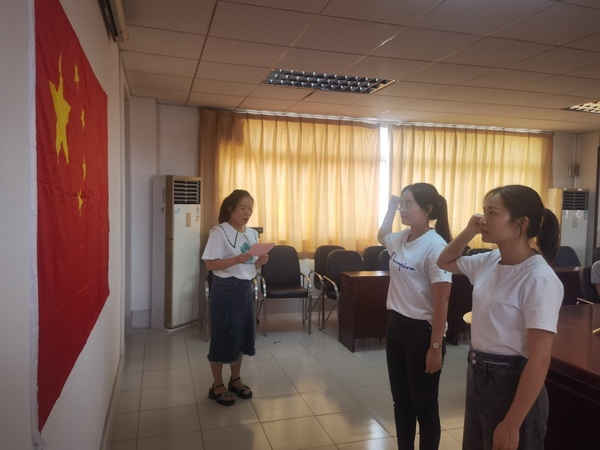 本學期加入一中大家庭的新教師是吳豈賢、黃攬月兩位年輕老師。何德建老師為她們主持入職宣誓儀式。面對國旗,兩位新人鄭重承諾:忠于黨的教育事業,貫徹國家教育方針,履行教師神圣職責;做有理想信念、有道德情操、有扎實知識、有仁愛之心的好教師;愛國守法、忠于職守,弘揚正氣、廉潔從教,為人師表、甘于奉獻,教書育人、關愛學生,為學生的全面發展、為中山的教育事業奉獻自己的智慧與力量,為黨和人民的教育事業而努力奮斗!