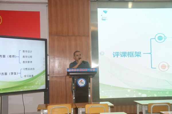 2022年10月10日,小欖鎮(zhèn)第一中學在階梯室舉行以“設計、評課、反思”為主題的第二次教學研討活動。林學明主任主持活動,學校全體行政、教師參加活動。本次活動主要通過示范課,物理、數學和語文學科的教師代表分別就主題相關內容進行評課交流和研討。