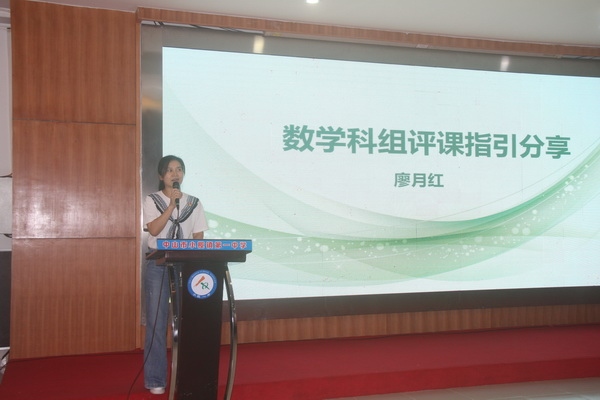 數(shù)學(xué)科組廖月紅老師圍繞“數(shù)學(xué)科組評課指引分享”這一中心,對如何開展評課活動做了分享交流。她認(rèn)為評課應(yīng)構(gòu)建一個框架,教的方面,可對老師的教學(xué)設(shè)計、教學(xué)過程、教師素養(yǎng)等進(jìn)行評議;學(xué)的方面,可對學(xué)生的學(xué)習(xí)習(xí)慣及狀態(tài)、學(xué)習(xí)效果等進(jìn)行評議。她還對這兩方面的評課內(nèi)容作了具體的分析。