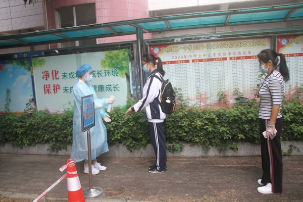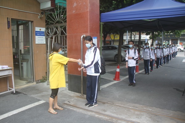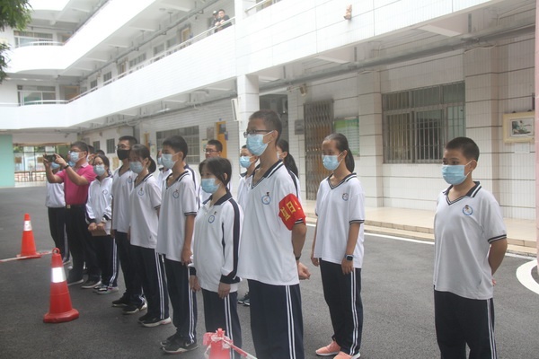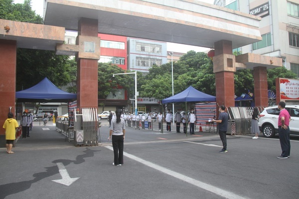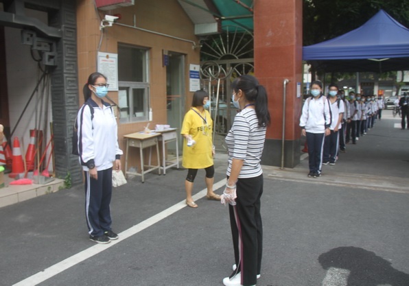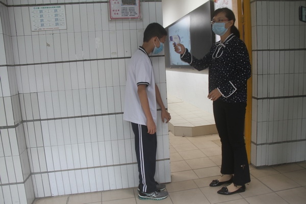 早上7:25分,學生保持間距入校,校門口值日教師用體溫槍逐一檢測體溫,發現體溫異常學生,即刻報告值日行政。值日行政將該生帶至臨時隔離點,由校醫檢查、詢問學生的癥狀和接觸史。校醫做好相關記錄,向班主任反饋情況,需要就醫的即致電家長及時帶學生去醫院發熱門診。事后由專人對相關場所及時消毒。