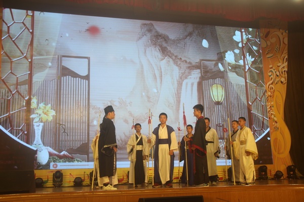 在現場,同學們講演前后展示的千人巴烏演奏,將講演會氣氛烘托到極點。之后的詩經、周游列國篇、老子悟道、孔門弟子、孫子兵法、合縱聯盟之分崩離析、禮記、周易、太史公書、漢書、花木蘭、《齊民要術》書名由來、徐霞客游記、本草綱目、跨時代會面、知行合一等節目一個比一個精彩,掌聲一陣比一陣熱烈。各班演講的同學用鏗鏘有力的聲音、堅定激昂的腔調,將一個個鼓舞人心、感人肺腑、誘人深思的經典作品演繹得淋漓盡致,帶領現場師生領略了波瀾壯闊的中華經典。