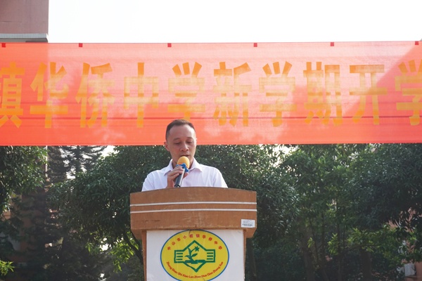 最后是歐潤添校長為新學期開學致辭。歐校長首先用熱情洋溢的話語歡迎初一級新同學的到來,給僑中這個溫暖的大家庭注入新鮮的血液。歐校長的講話,既對過去一學期學校取得的各項成績給予了充分的肯定,也對全體師生新學期的發展提出了要求和希望。他指出學校2020學年的工作主題是:強質量、樹品牌、謀發展。圍繞著“質量與品牌年”的中心主題,對同學們提出了四點要求:1.銘記歷史,愛我中華;2.積極參與,播撒文明;3.養成習慣,提高素養;4.書香校園,閱讀成長。他勉勵全體師生要以嶄新的面貌、飽滿的熱情、積極的態度、刻苦的學習揚帆啟航,迎接新的學期,新的挑戰,在新的起跑線上用勤奮與智慧書寫新的篇章。