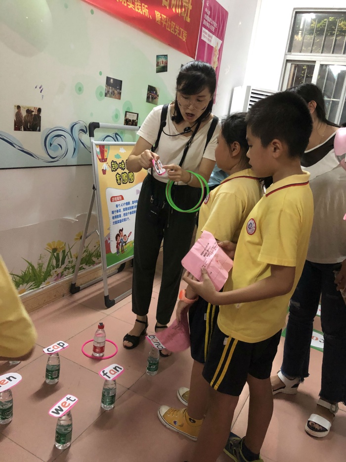 活動首先以一首歡快的字母歌熱場,楊賽泳老師簡單介紹了學校英語科組的特色和亮點,胡杜鵑老師和孩子們現場進行了拼讀互動。接著孩子們就到各個攤位去玩游戲,拼讀聲、笑聲、喝彩聲此起彼伏。精彩的活動結束后,孩子們還不舍得離去。英語老師們表示,本次活動作為西區昌平小學英語國家級課題實踐系列活動之一,隆平社區是第一站,接下來,每個月底,課題組成員都會把這么有趣、生動的英語拼讀學習分別帶入西區彩虹社區、隆昌社區以及沙朗片區。活動旨在于以理論指導實踐,并通過實踐,提升家長對網絡環境下語音教學的理解及網絡平臺的運用,從而創設更優的學生語音學習網絡環境,進而提升學生的語音學習能力。