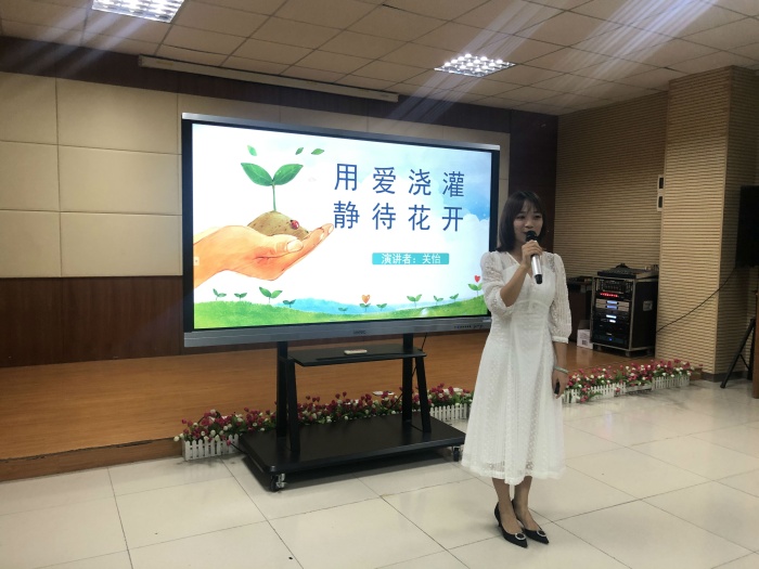 當(dāng)天下午,報告廳內(nèi)熱鬧非凡,不僅匯聚了全校教職工的眼球,還吸引了該校中高年級熱愛演講、尊師好學(xué)的孩子參與。活動開始時主持人彭宇津主任對比賽規(guī)則進(jìn)行了簡單介紹,明確此次演講比賽使用普通話脫稿演講,儀態(tài)大方自然;演講時間為5-8分鐘,最后評選出一二等獎若干名。來自該校九大科組的九位老師分別從不同的角度對新時代的師德展開詮釋,講述自己與教育、教師和學(xué)生、教師與教師間不一樣的精彩與感動。以“用愛澆灌、靜待花開”為題開場的是來自數(shù)學(xué)科組的關(guān)怡老師。她在講述自己和一位插班生之間的故事演繹了“沒有愛便沒有教育”的教育理念。以“靜待花開、向陽而生”的滿心期待告訴師生們“教育就是如此簡單,就是用生命影響生命,用生命影響生命的”。離開病床上的兒子的張潔舒老師用行動與成長的一個個小故事講述了自己實(shí)踐的優(yōu)良師德。接著劉慧老師從完美老師開始講述,把內(nèi)心對學(xué)生的愛與關(guān)心概括為愛生、正己、育人三方面。英語科的胡杜鵑老師引經(jīng)據(jù)典地從道德、底線、素質(zhì)及信念四方面詮釋了何為“師德”。她回顧過往迎來送往的點(diǎn)滴,高度概括出高尚的師德應(yīng)為“心法優(yōu)于兵法,做一名暖心的教師”。初到昌平的黃孟金老師與李夢云老師則從自己對初為人師的點(diǎn)滴感受進(jìn)行演講,樸實(shí)中現(xiàn)初心。陳思穎老師則以“猜猜他是誰”的互動為師生們呈現(xiàn)了一個個師德高尚的普通教師形象,既有上了年紀(jì)還帶頭掏水溝的賴?yán)蠋煟灿心贻p卻孜孜不倦、不分寒暑假開展籃球訓(xùn)練的梁老師。師生們在一個個熟悉且和藹可親的形象中感受到了昌平人為教育而萌生的一團(tuán)和氣。其后,作為體育科的趙青杰老師用平實(shí)的語言回顧了自己初為人師時,從通過一個小事件幫助一個外來子弟家庭改變教育方法時的感觸,講述了自己永葆內(nèi)心的教育初心。最后一位孔桂花老師則以從另一個高度,以“根向下心向上,和而不同昌平人!”為題講述了自己的成長與學(xué)校優(yōu)秀教師的高尚品德。整場演講活動異彩紛呈,每位選手都以自己獨(dú)特的感受與呈現(xiàn)方式,以平實(shí)而又富有感染力的語言打動著在場的每一個人,會場掌聲雷鳴般不絕。