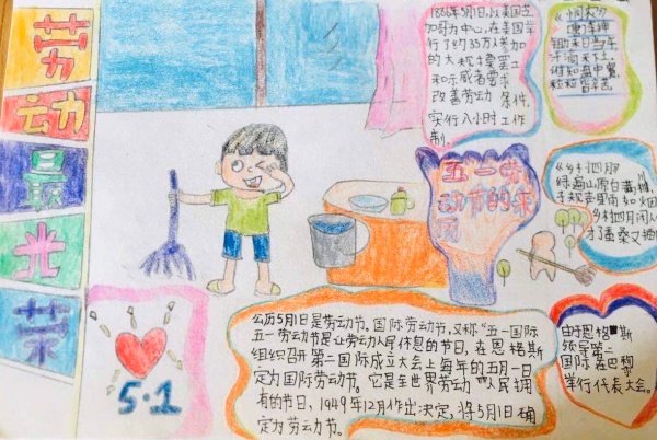 學校根據不同年級的學生特點布置了不同的內容。低年級以繪畫為主,首先要求五一假期間與爸爸媽媽一起對自家進行一次大掃除,接著再把爸爸媽媽勞動或平時工作的情節畫成一幅畫。中年級的同學除了進行大掃除,還要做一份《勞動最光榮》的手抄報,里面介紹勞動節的由來、全國勞模、自己的勞動感受。高年級的學生則開展一次“小鬼當家”活動:五天假期選擇一天由孩子當家,負責家里一天所有的家務勞動和事務管理,比如從早上做早餐開始,買菜做飯、洗碗拖地、洗衣晾衣折衣服等,體會父母的辛苦付出。然后把這一天的勞動用照片或視頻記錄下來,與父母一起做成美圖秀秀或短視頻,后面再寫上自己簡短的感受。