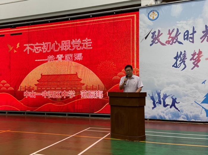 范振海校長告訴同學們,青少年是國之希望,青少年應不忘初心跟黨走;作為學生要做到三個唯有: 唯有堅定信仰,才能立下為國為民志;唯有勤奮學習,才能擔當歷史賦予的建設社會主義的重任;唯有跟黨走,才能為實現中華民族偉大復興的中國夢貢獻力量。他深情地說道:“作為新時代的青少年,需要有責任感和使命感,需要將個人奮斗融入到滾滾新時代發展大潮中,跟著黨走永向前,不斷追求卓越、續寫輝煌。”