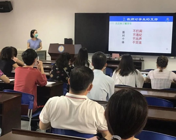 培訓(xùn)會(huì)的第一項(xiàng)內(nèi)容就是由心理老師雷靜婷帶來的《守望相助,共筑心晴天》的心理健康建設(shè)的專業(yè)培訓(xùn)課。當(dāng)陸續(xù)公布學(xué)生返校時(shí)間并對(duì)學(xué)生提出相應(yīng)要求后,中山一中西區(qū)中學(xué)心理教師借助專業(yè)監(jiān)測(cè)發(fā)現(xiàn),受疫情影響,學(xué)生返校后可能產(chǎn)生緊張、焦慮、敏感、抑郁、狂躁等心理問題。學(xué)生心理健康教育,對(duì)危機(jī)學(xué)生實(shí)現(xiàn)早發(fā)現(xiàn)、早診斷、早干預(yù),是擺在學(xué)校和每一位教師面前的一件大事。為此每一位老師都應(yīng)該調(diào)試好自己,并掌握必要的專業(yè)知識(shí)、積極采取多種方式對(duì)學(xué)生進(jìn)行心理疏導(dǎo),引導(dǎo)學(xué)生克服心理障礙,線上教學(xué)與線下校園學(xué)習(xí)平穩(wěn)過渡,確保健康愉快成長(zhǎng)。雷老師的培訓(xùn),既有現(xiàn)象分析,更有理論支撐和具體實(shí)施措施,提出問題同時(shí)很好地解決問題,老師們都覺得收獲很大,紛紛拿手機(jī)拍下具體的實(shí)操步驟。
