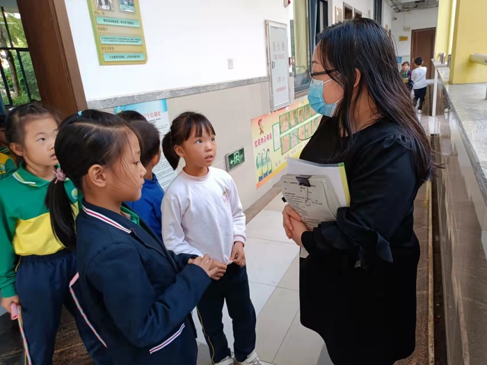 接著,羅婷婷主任走進教室、走進學生,通過問卷調查、查閱學生作業登記本和學生暖心交流等形式來了解學生在“雙減”政策下的作業完成情況以及在學校的學習生活情況。
