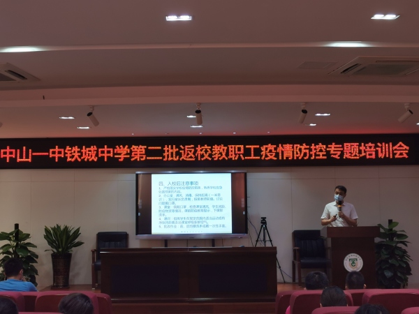 疫情防控關系到每一位師生的安全,開學工作關系到千家萬戶的生活。隨著初三年級順利返校復學,中山一中鐵城中學按照省教育廳的文件精神,全體教職工團結一心,群策群力,于5月4日下午召開了初一、初二級全體教職工疫情防控專題培訓會議,積極落實防疫工作,精準做好初一、初二順利復學返校準備。