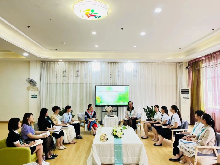 教研分享環節:菁菁子青幼兒園園長劉春梅發言,她根據幼兒園的日常生活安排,分別從生活、體能、自主游戲和學習四個方面進行講述,分析了小學和幼兒園的區別。西區煙洲小學的李佩欣老師從一年級新生的心理、作業、坐姿、書寫和傾聽習慣等方面展開,提出了小學與幼兒園的不同,也分享了煙洲小學在幼小銜接上的做法。煙洲小學的譚泳華老師認為,小幼銜接的路徑有兩條:一條是從幼兒園出發,預設一年級學生的能力發展水平去建構幼兒園兒童入學適應教育課程;另一條是從小學出發,依據新課標要求,向幼兒園大班的適應教育靠攏。幼兒園的園長都分享了他們在幼小銜接上的做法,老師們都受益匪淺。