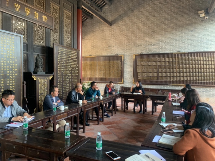 首先,學校傳統文化組主持人梁麗瑩老師和大家回顧煙洲書院百年的發展歷程,接著介紹學校圍繞書院開展的各項活動,包括課題研究、校本課程建設、學校開展的德育活動以及書院修身學堂等。隨后,傳統文化組成員就書院文化與學校育人模式的探索、書院對傳統文化的傳承與發揚等問題提出疑惑和發表自己的見解。現場氣氛熱烈。