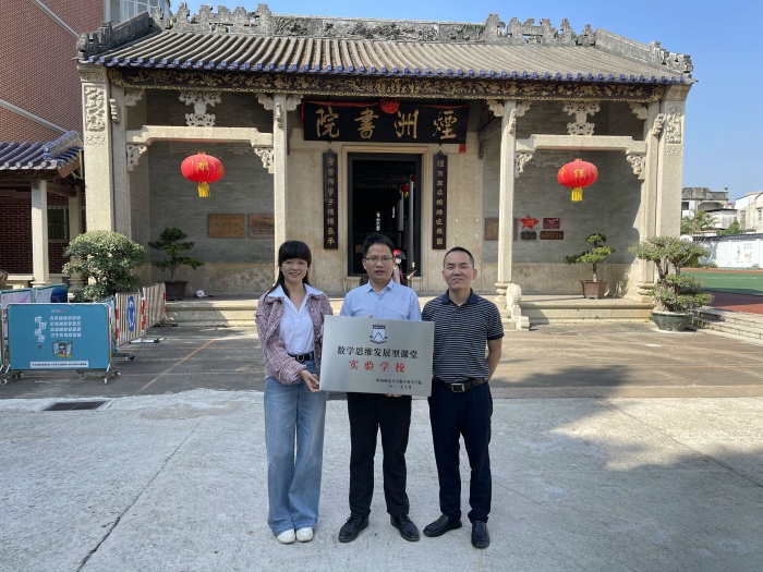 近日,由華南師范大學數學科學學院發起的數學思維發展型課堂實驗學校授牌儀式在煙洲小學舉行。中山市教研室數學教研員方勇老師,楊仙逸中學謝榕平老師,煙洲小學部分行政和教師代表參與了本次活動。