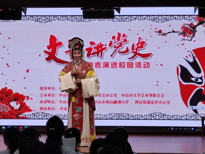 為傳承中華優(yōu)秀傳統(tǒng)文化,普及和推廣京劇藝術(shù),2022年11月1日下午,由中共中山市委宣傳部指導(dǎo),中山市精神文明建設(shè)委員會(huì)辦公室,中山市文學(xué)藝術(shù)界聯(lián)合會(huì)主辦,中山市戲劇家協(xié)會(huì),中山市西區(qū)街道宣傳辦公室,中山市西區(qū)煙洲小學(xué)承辦的,“文藝講黨史”戲曲表演進(jìn)校園活動(dòng),走進(jìn)中山市西區(qū)煙洲小學(xué),帶來(lái)了一場(chǎng)精彩的視聽(tīng)盛宴,讓師生們與京劇親密接觸。
