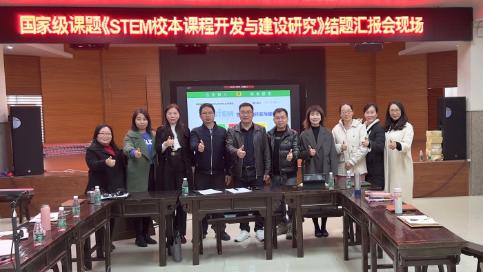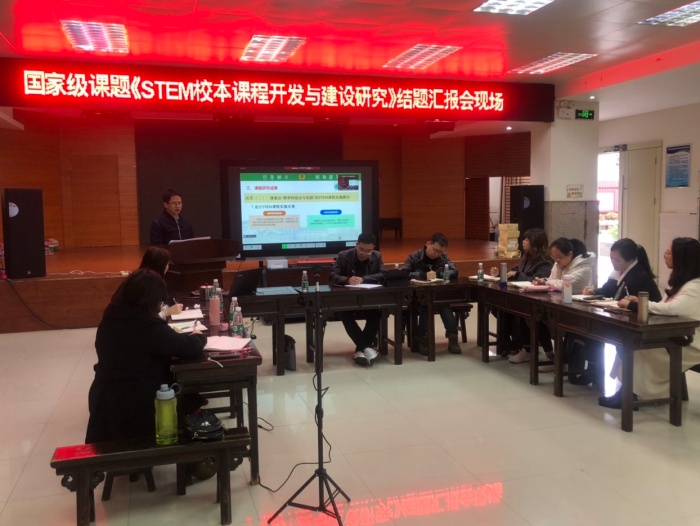 會(huì)議伊始,課題組成員黃石生老師作課題研究結(jié)題報(bào)告匯報(bào)。黃老師分別從研究背景及擬解決問題、研究過程、研究成果、研究效果、創(chuàng)新及進(jìn)一步思考等五大方面,對(duì)課題的研究進(jìn)行了詳盡的總結(jié)匯報(bào)。此次課題研究成果斐然:課題組開發(fā)出了“以學(xué)習(xí)為中心”的STEM校本課程,探索出了“跨學(xué)科綜合與實(shí)踐”的STEM課程實(shí)施路徑,探索了STEM課程學(xué)習(xí)的評(píng)價(jià)方式,STEM課程開發(fā)建設(shè)支持平臺(tái)建設(shè)實(shí)現(xiàn)新突破。課題組還將課程開發(fā)與建設(shè)的經(jīng)驗(yàn)撰寫成12篇論文,其中有4篇論文公開發(fā)表在教學(xué)權(quán)威雜志上。